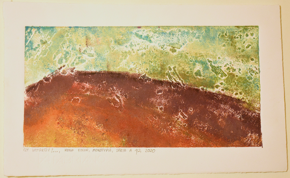 Grafika artystyczna na ścianę. Monotypia kolorowa sygnowana 16,0 x 32,0 cm - CZY WYSTARCZY?...